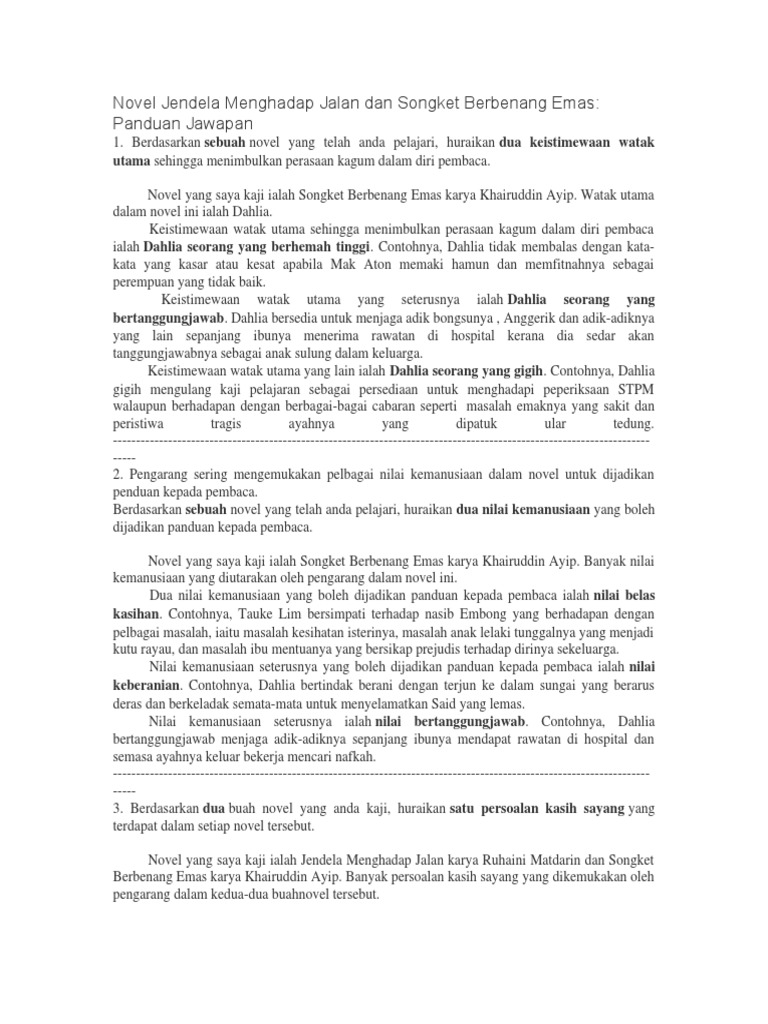 Berdasarkan sebuah novel yang anda kaji, huraikan latar masyarakat yang dipaparkan dalam novel tersebut. Berdasarkan sebuah novel yang anda pelajari, jelaskan tema novel tersebut. Dahlia tetap mengutamakan pelajarannya dengan meminjam nota dan bertanyakan kepada kavita dan siti wangi. Songket pandai sikek benang emas warna merah coklat. Novel songket berbenang emas 10. Contoh nota songket berbenang emas. Songket ditenun dengan tangan menggunakan benang emas dan perak. Novel songket berbenang emas merupakan novel terpilih untuk komsas tingkatan 5 bagi zon 1 iaitu negeri kedah, perak, perlis dan pulau pinang. Songket adalah kain tenun mewah yang biasanya dikenakan saat kenduri. Novel yang saya kaji ialah songket berbenang emas, karya khairuddin ayip.konflik pertama yang dihadapi oleh watak utama ialah konflik antara dahlia dengan nek kiah. Semoga perkongsian berkaitan nota novel songket berbenang emas dapat membantu semua. Persoalan tentang kejayaan hasil daripada kegigihan dalam pelajaran. Novel songket berbenang emas hasil karya.