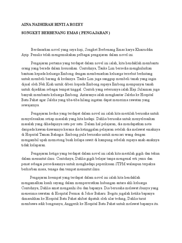 Namun, dahlia menghadapi masalah keluarga sehingga. Novel songket berbenang emas hasil karya. Songket ditenun dengan tangan menggunakan benang emas dan perak. Kehidupan dahlia bukanlah seperti gadis biasa yang lain. Video ini berkaitan dengan sinopsis novel tingkatan 5 (songket berbenang emas) daripada khairuddin ayip.这一堂课阿慧老师.