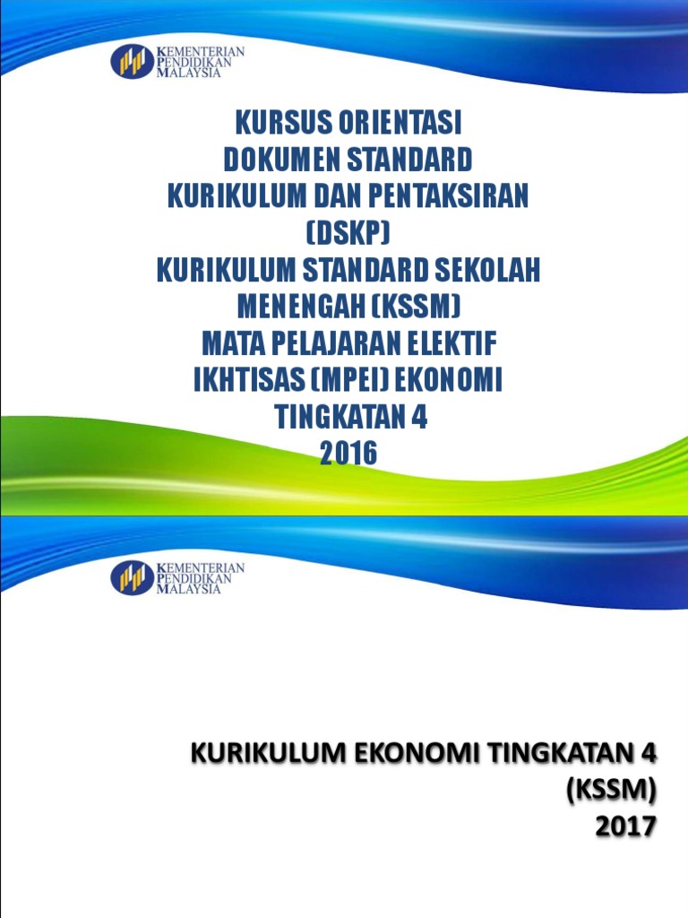 View dskp ekonomi kssm tingkatan 4.pdf from aa 1kurikulum standard sekolah menengah ekonomi dokumen standard kurikulum dan pentaksiran tingkatan 4 kementerian pendidikan malaysia kurikulum standard More images for dskp ekonomi tingkatan 4 » Standard kandungan 1 asas ekonomi 2. Objektif kssm ekonomi tingkatan 4 bertujuan membolehkan murid mencapai objektif berikut: Kandungan peruntukan waktu (bilangan jam) 4.0 pengeluaran 4.1 konsep pengeluaran, kos dan hasil 24 4.2 produktiviti dan eksternaliti jumlah waktu 105 22 kssm ekonomi tingkatan 4 1.0 pengenalan kepada ekonomi standard kandungan standard pembelajaran catatan cadangan aktiviti: